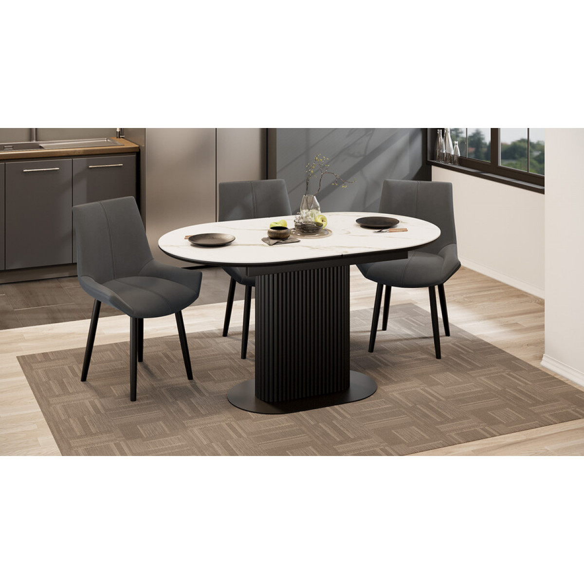 Стол обеденный раздвижной «Эридан» Тип 2 Черный муар, Керамика матовая белый мрамор