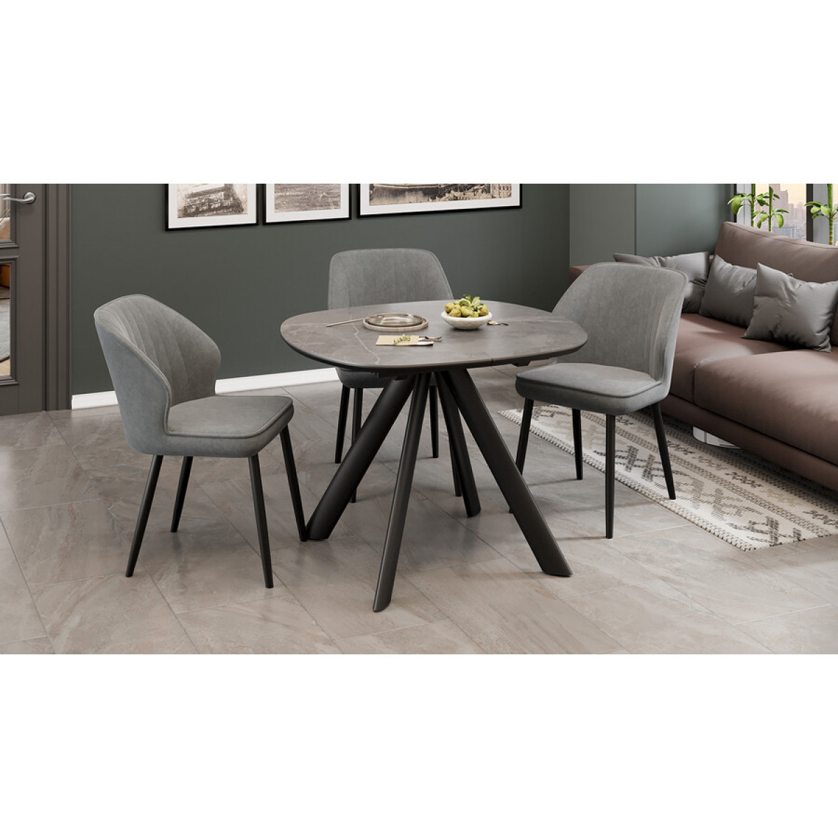 Стол обеденный раздвижной «Найтон» Тип 1 Черный муар, Керамика матовая серый мрамор