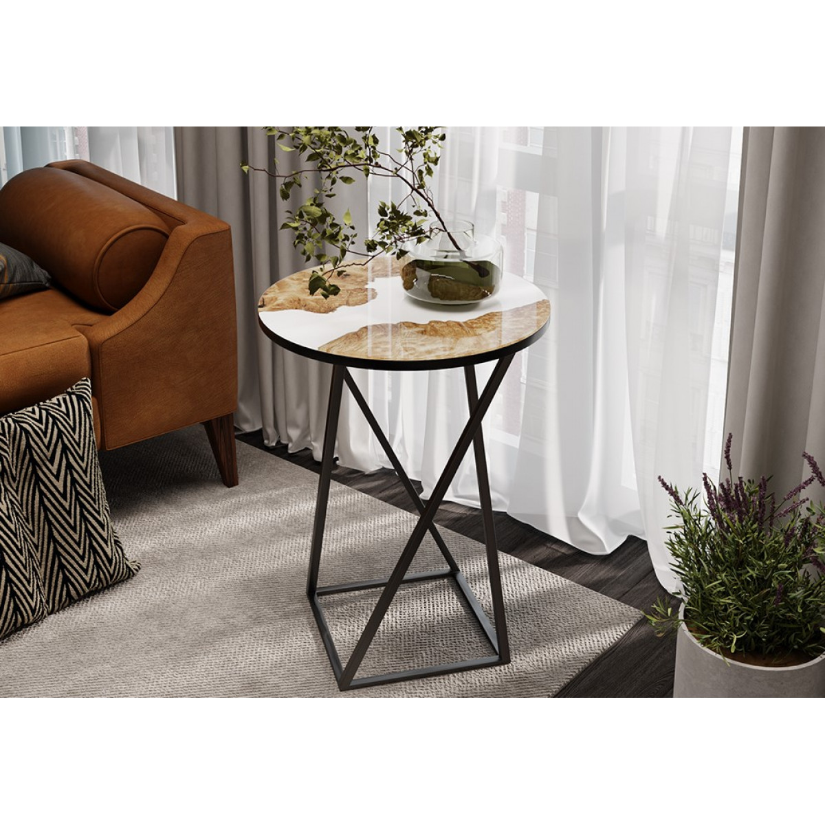 Стол со стеклянной поверхностью ДП 1-03-05 исп.2 (Черный/Стекло с рисунком Слэб черный)