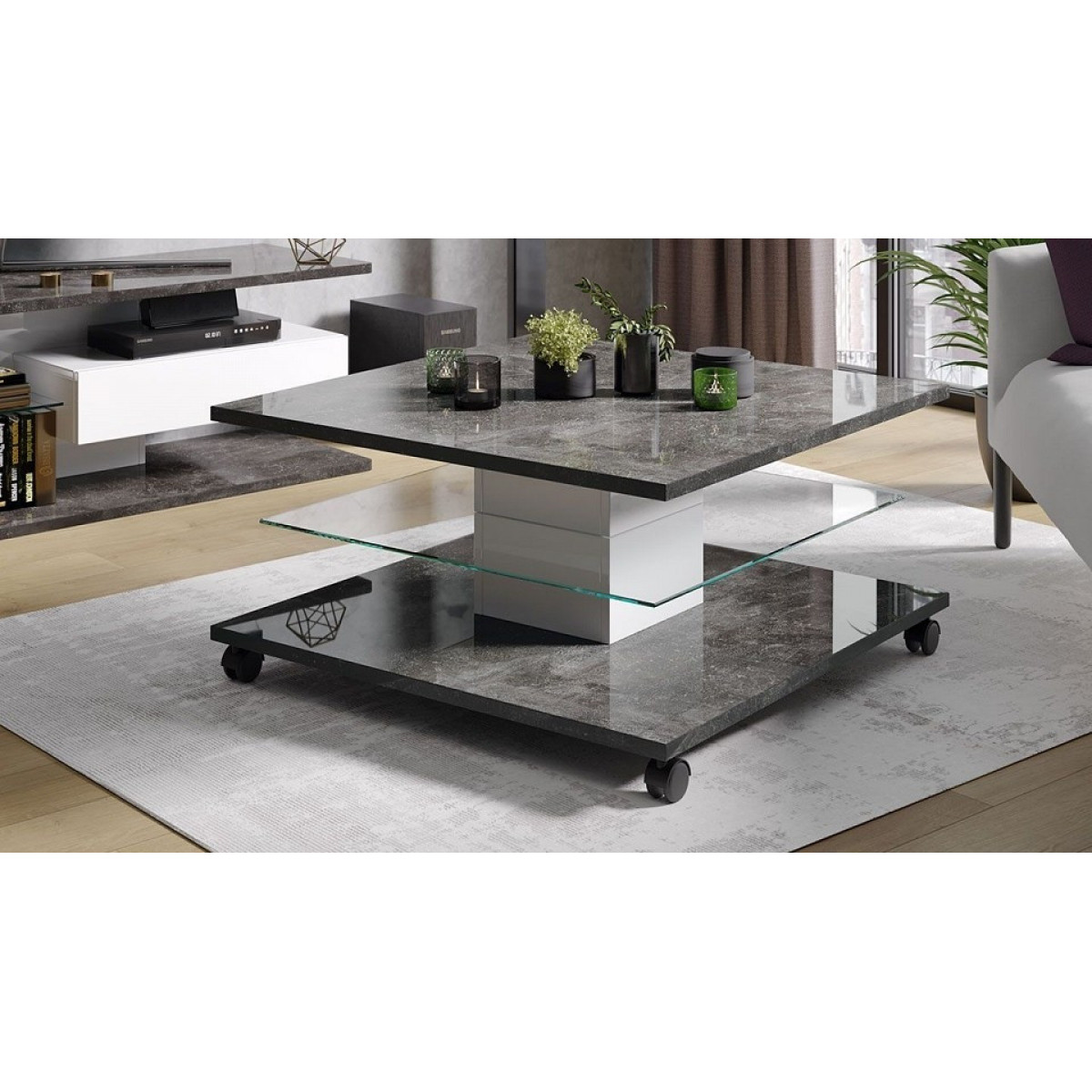 Столешница и нижняя крышка покрыты эмалью с эффектом высокого глянца, что придает столику неповторимую изысканность и утонченность. Белый глянец визуально расширит пространство, сделает его лаконичным и строгим, при этом освежит весь интерьер. Модель оснащена роликовыми колесами, которые обеспечивают мобильность изделию – его легко можно будет передвинуть без особых усилий.