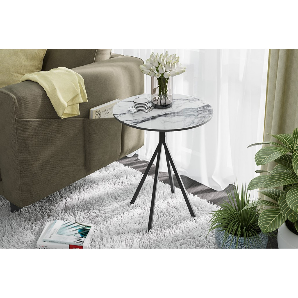 Стол журнальный ДП 1-04-14 (Черный/Стекло Мрамор белый)