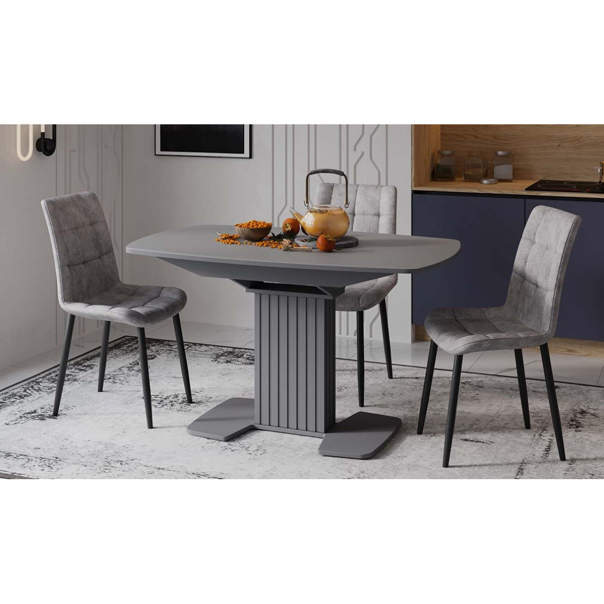 Стол обеденный ХИЛТОН тип-2(Графит матовый/Стекло матовое серое)