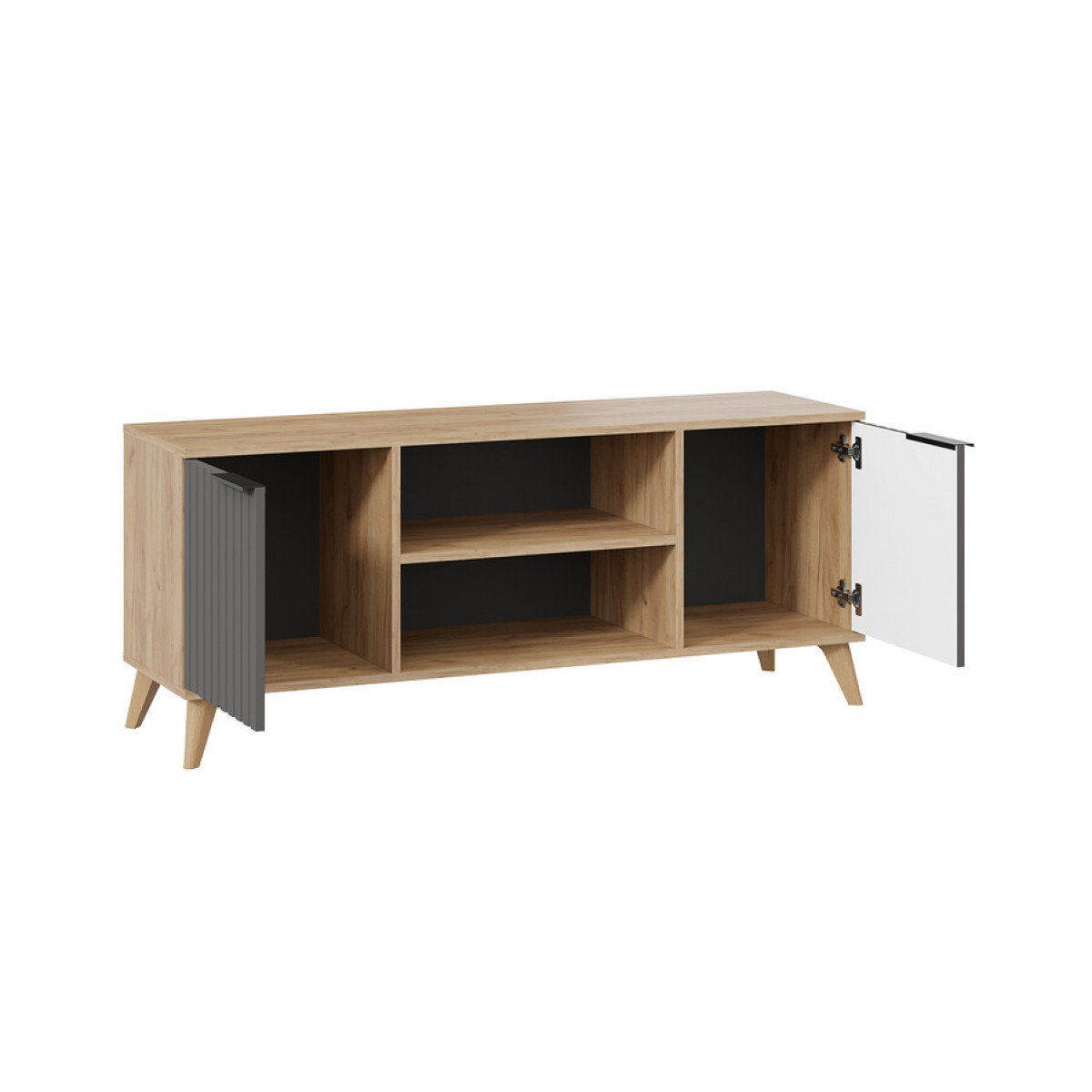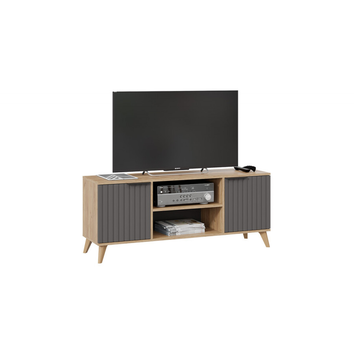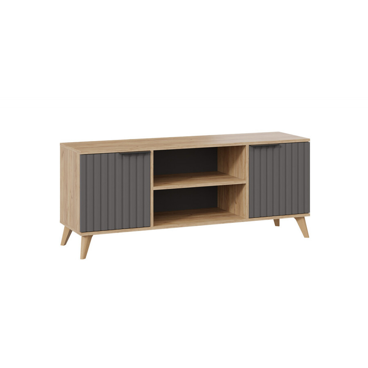 Тумба под ТВ «Хилтон» Исп.2 с опорами Бук матовый, Дуб Крафт золотой, Графит матовый