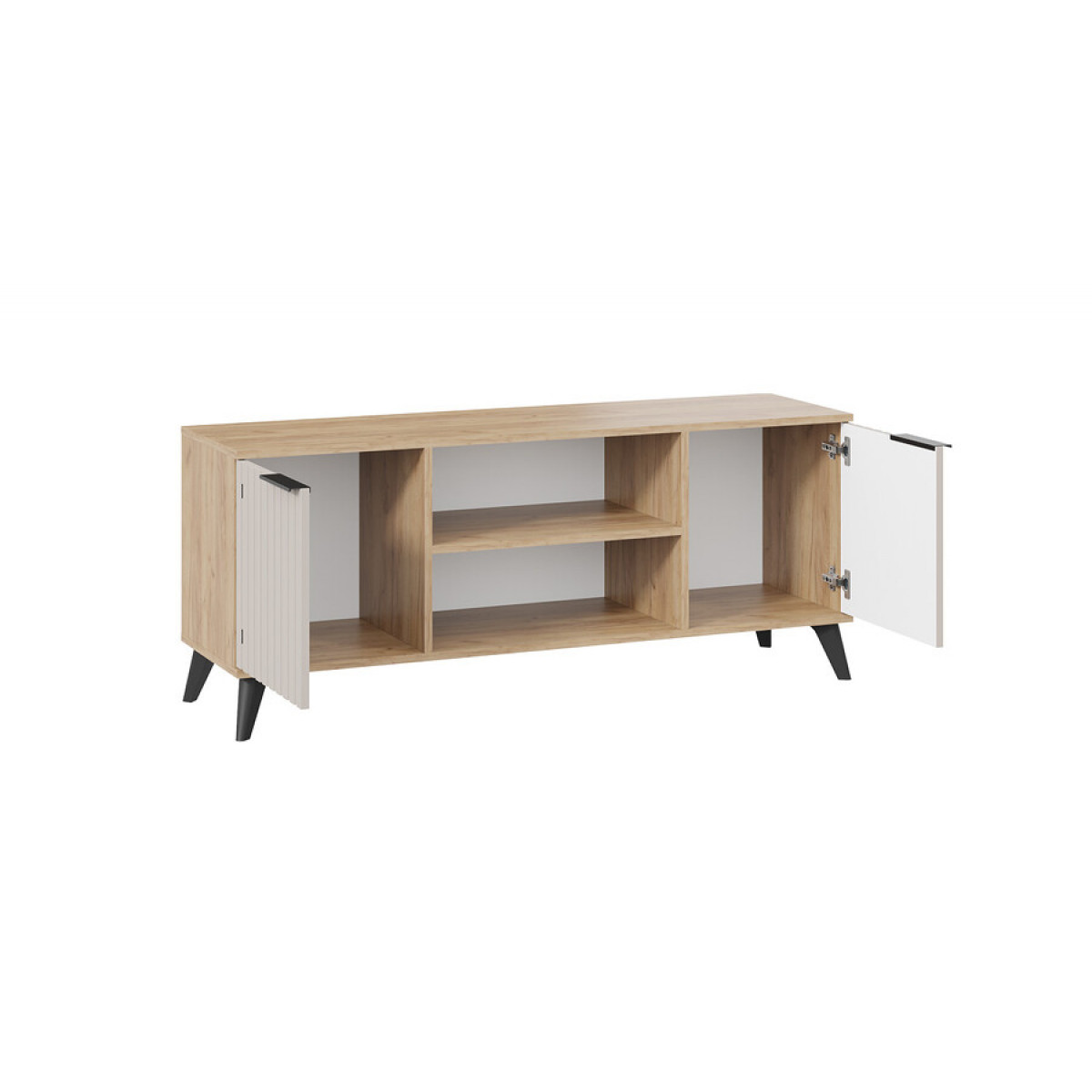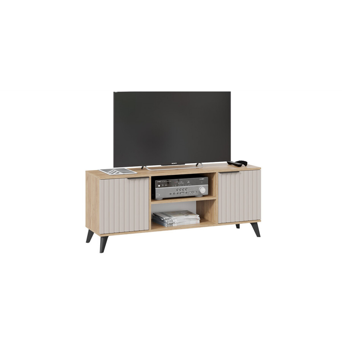 Тумба под ТВ «Хилтон» Исп.2 с опорами Черный матовый, Дуб Крафт золотой, Мокко матовый