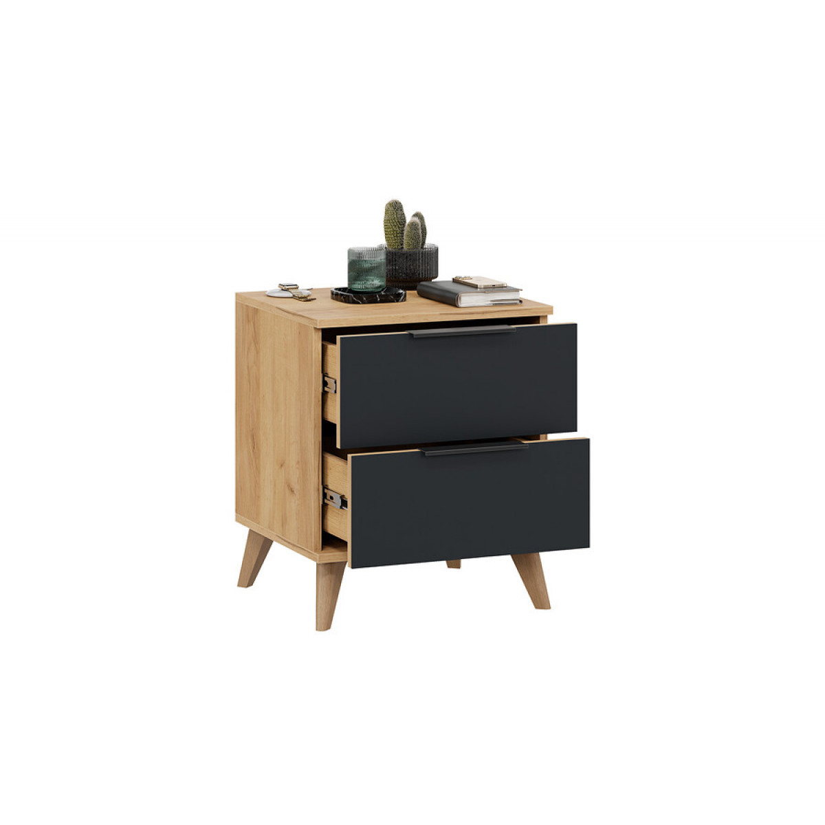 Тумба прикроватная «Джоли» с опорами Бук матовый, Дуб Крафт золотой, Графит матовый