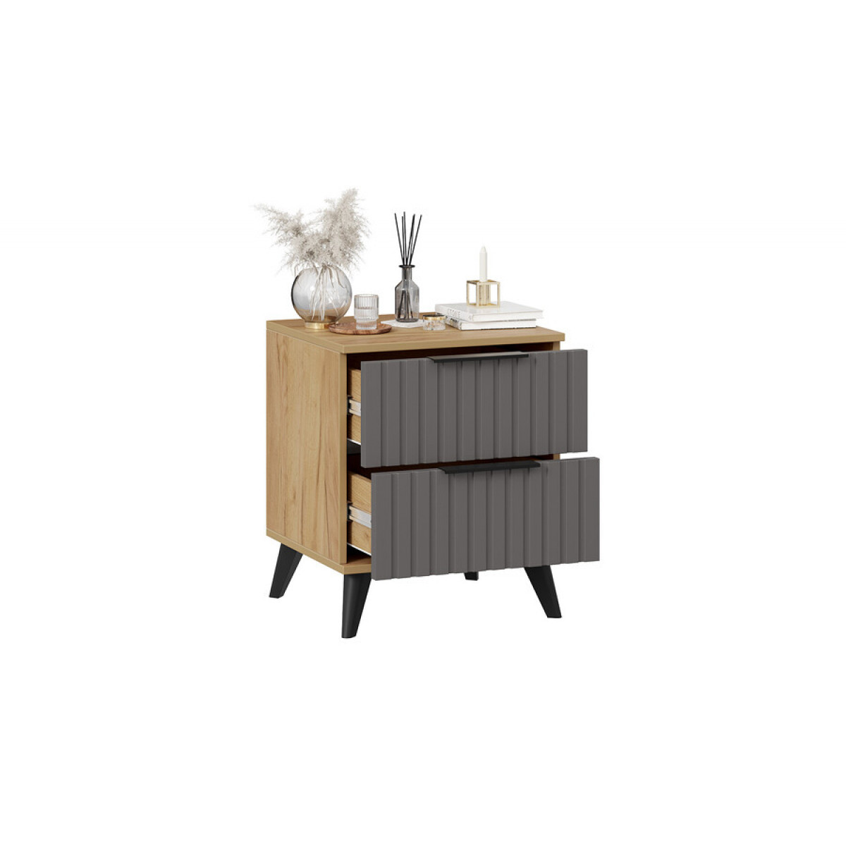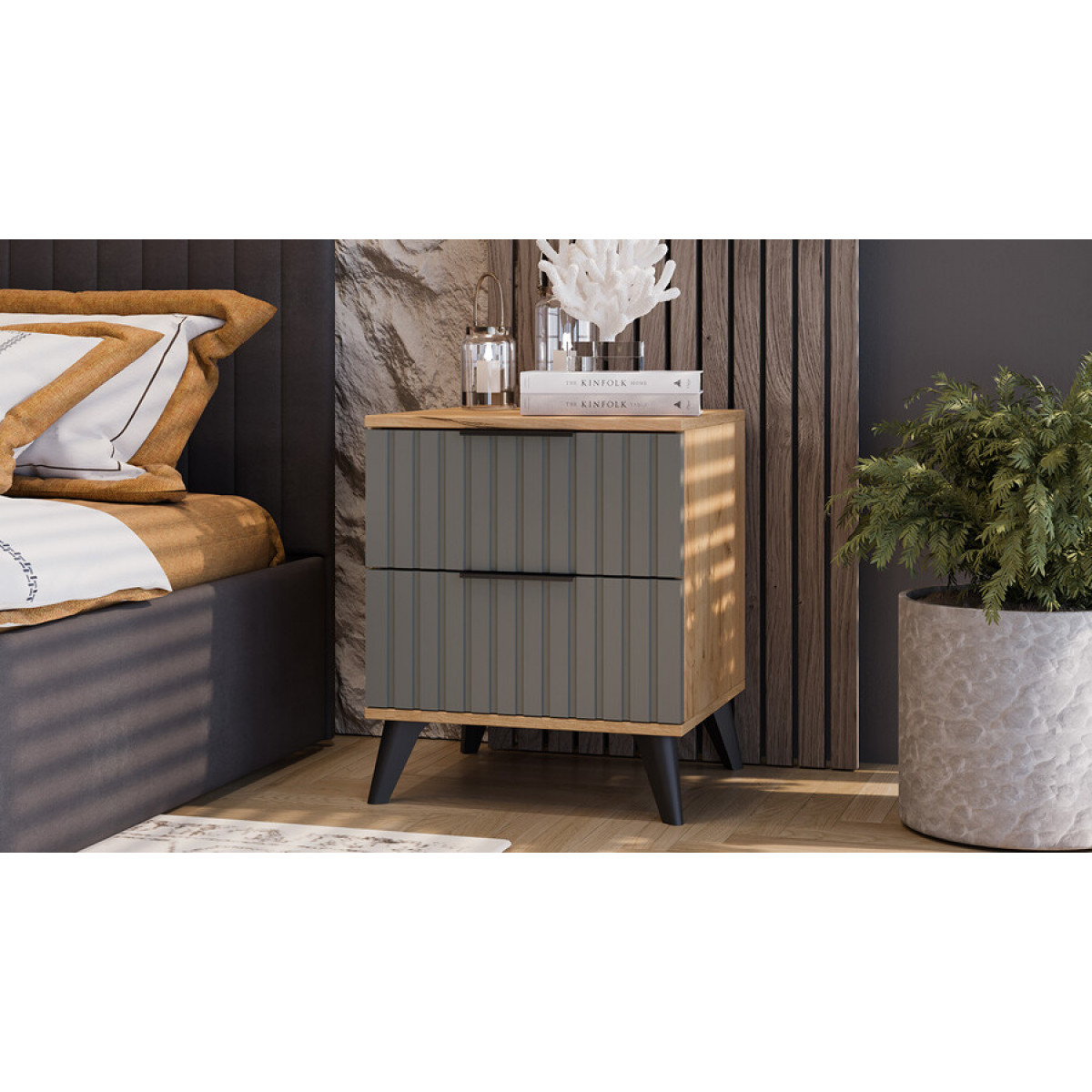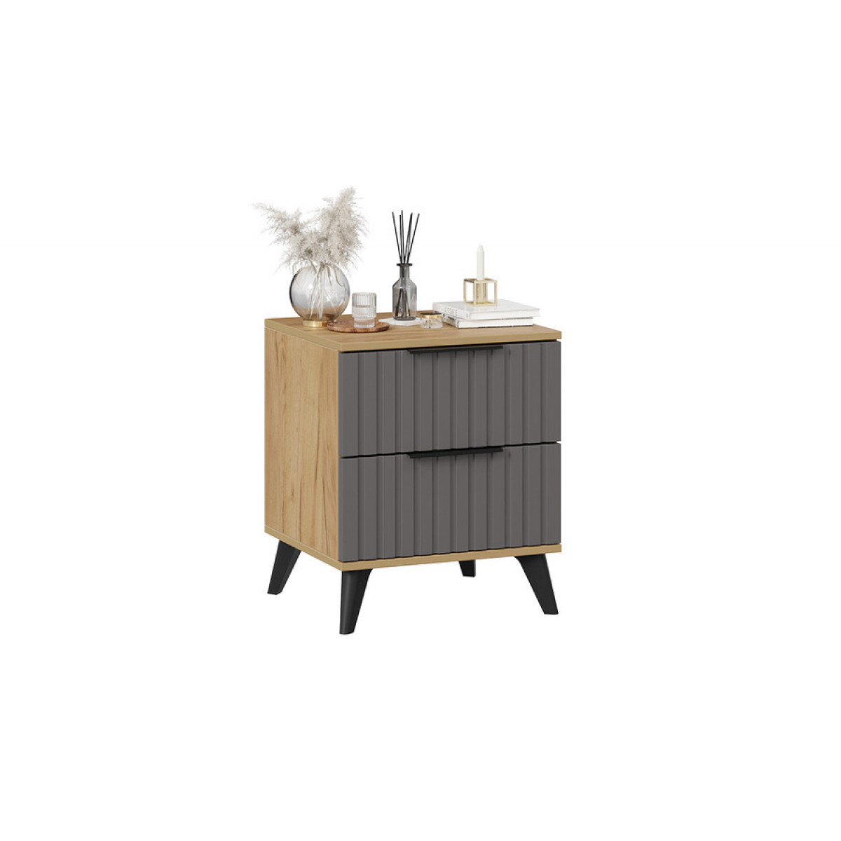Тумба прикроватная «Хилтон» с опорами Черный матовый, Дуб Крафт золотой, Графит матовый