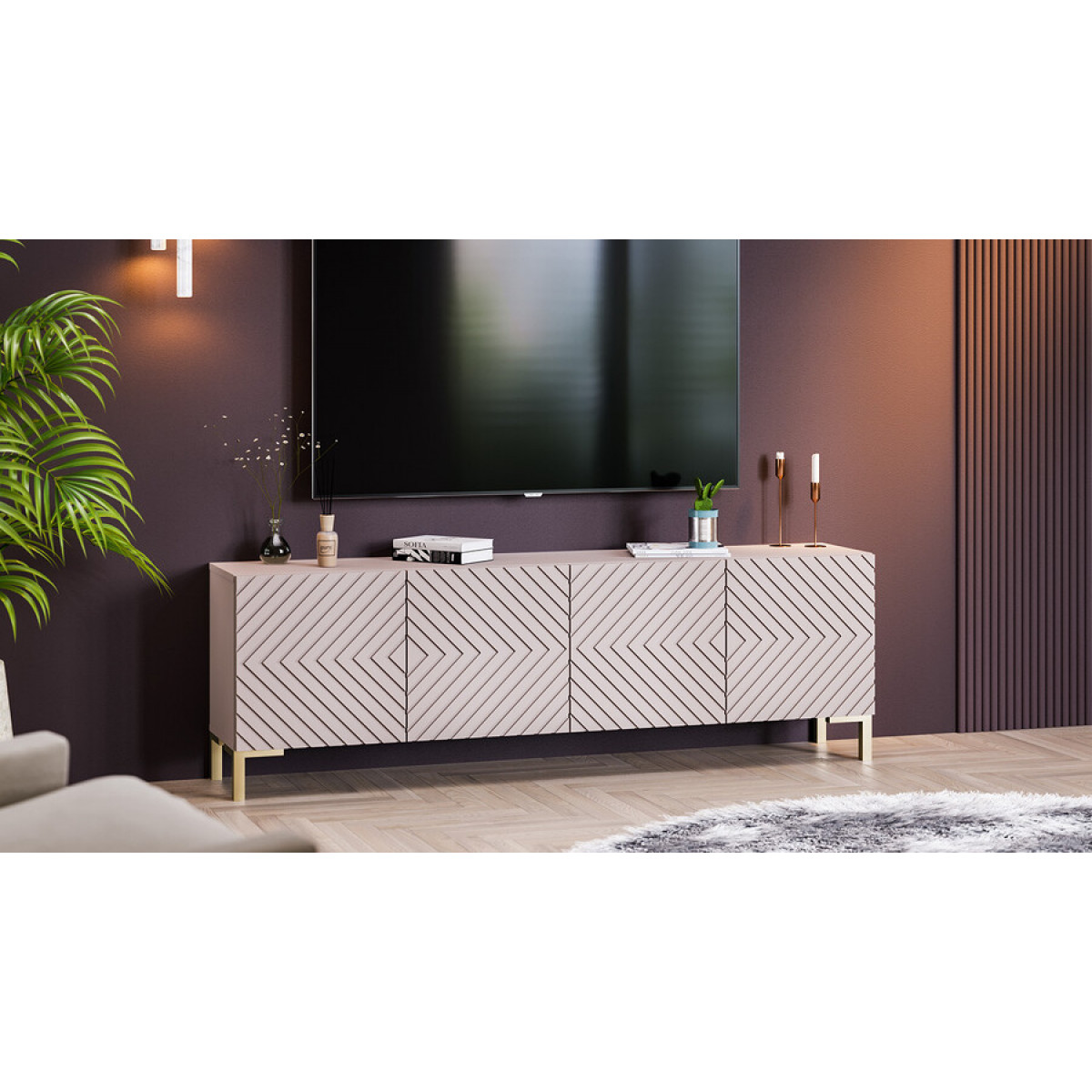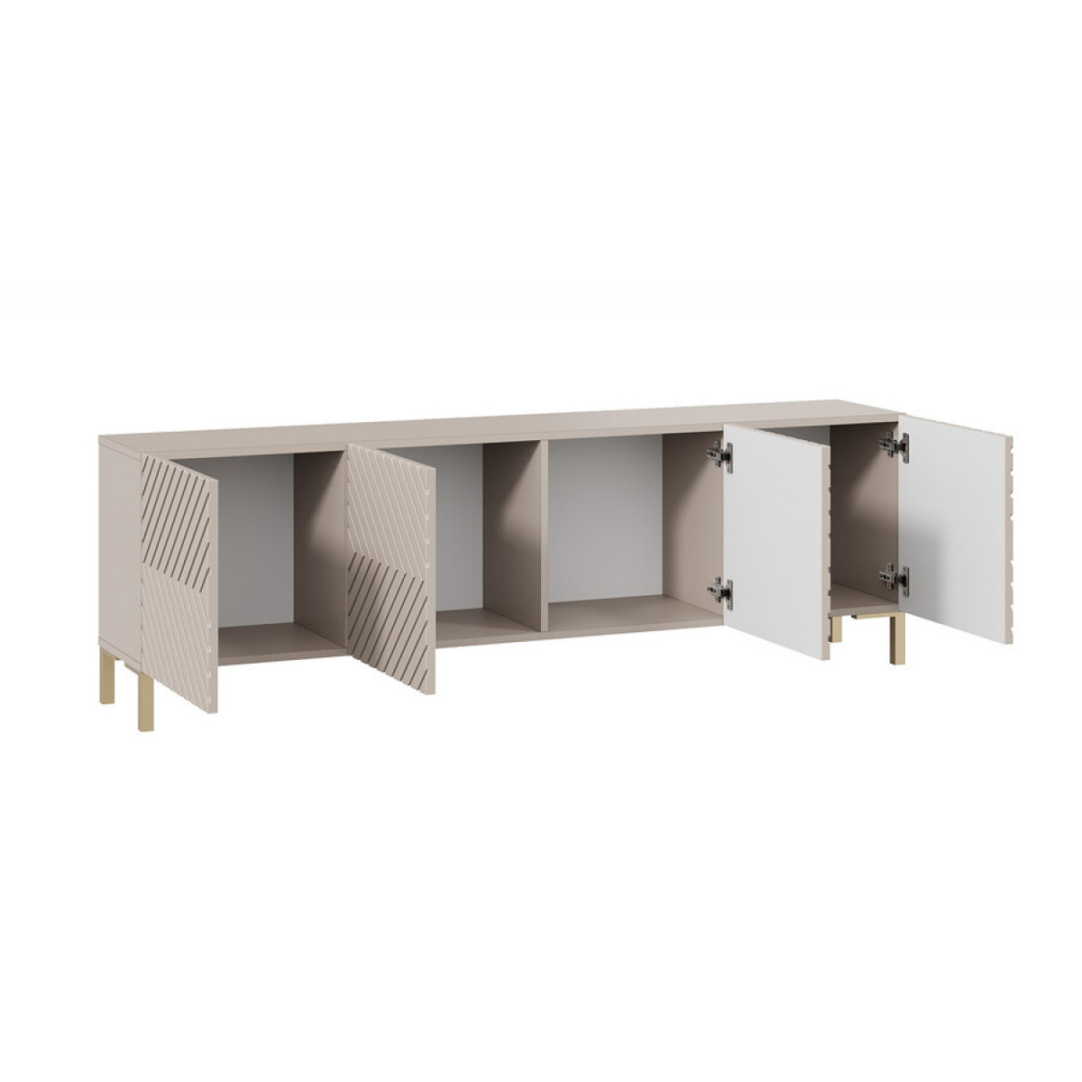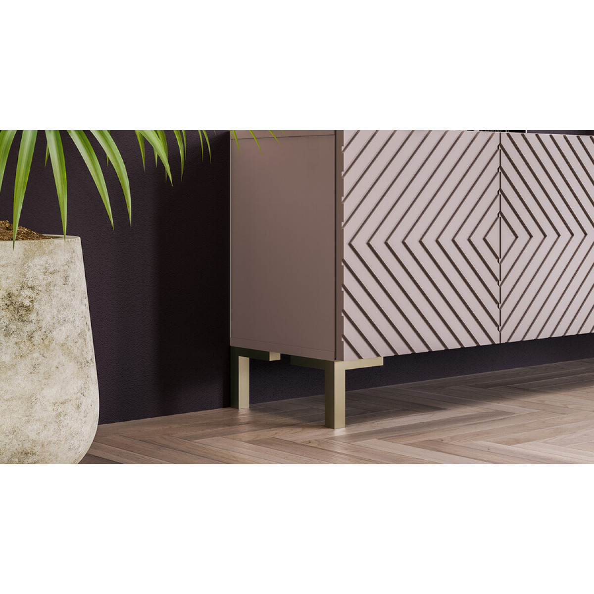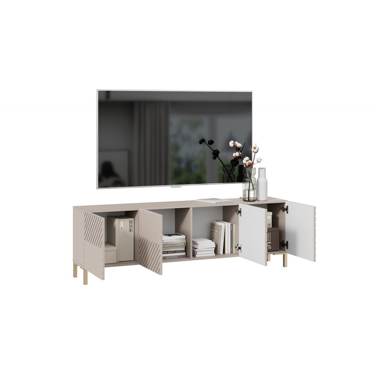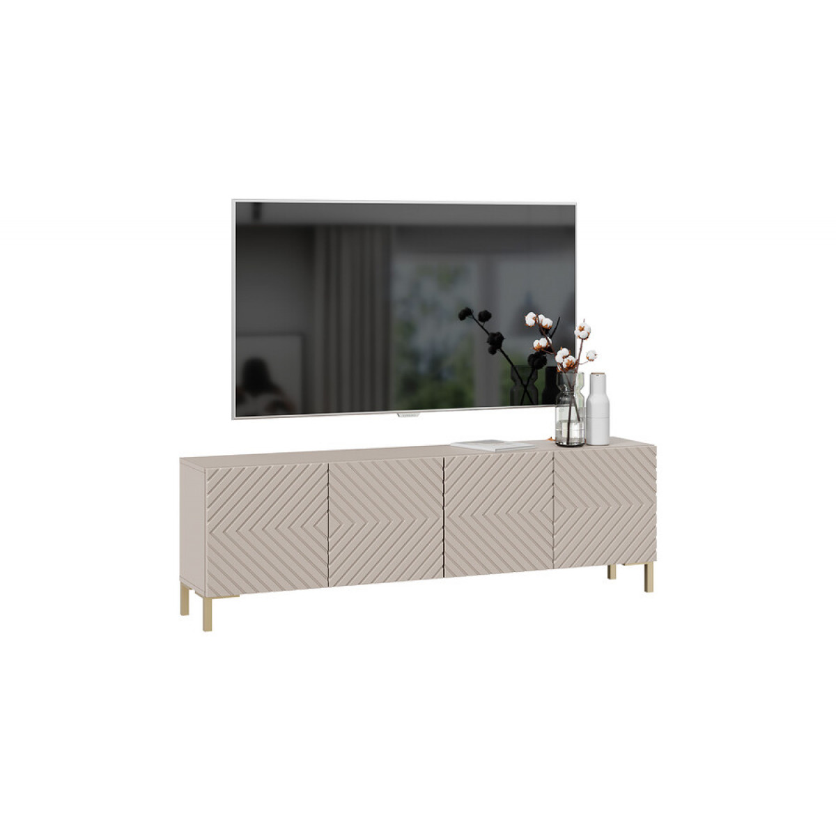 Тумба ТВ с опорами Танго Золото розовое, Глиняно серый, Холст латте