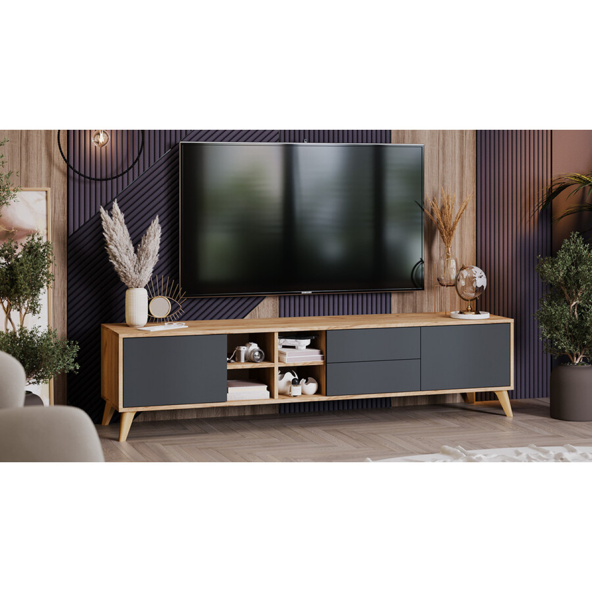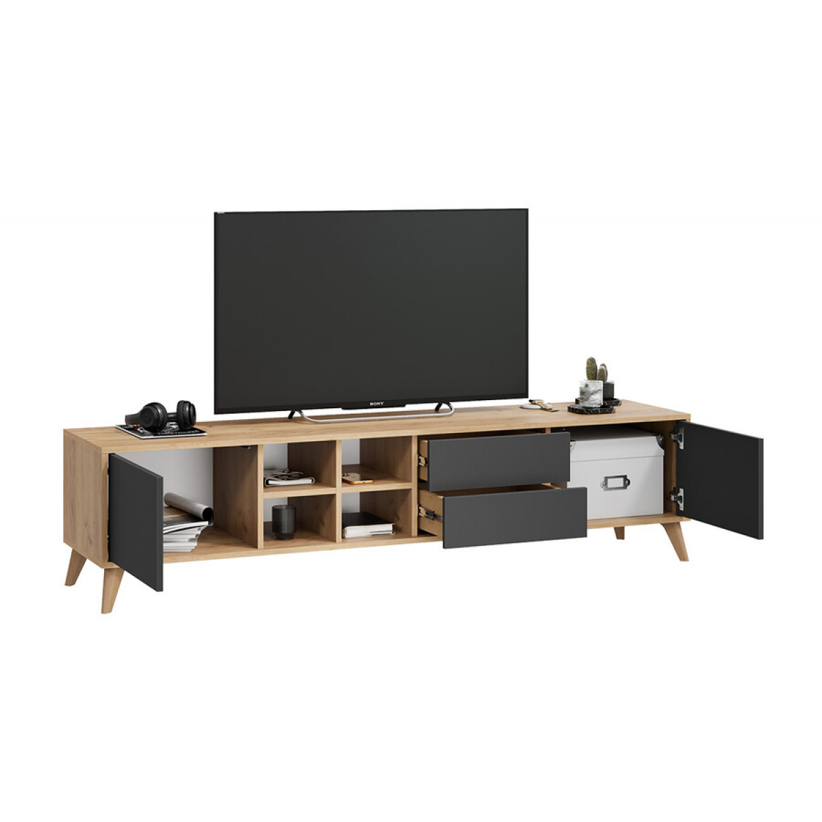 Тумба ТВ тип 5 с опорами Бук матовый, Дуб Крафт золотой, Антрацит