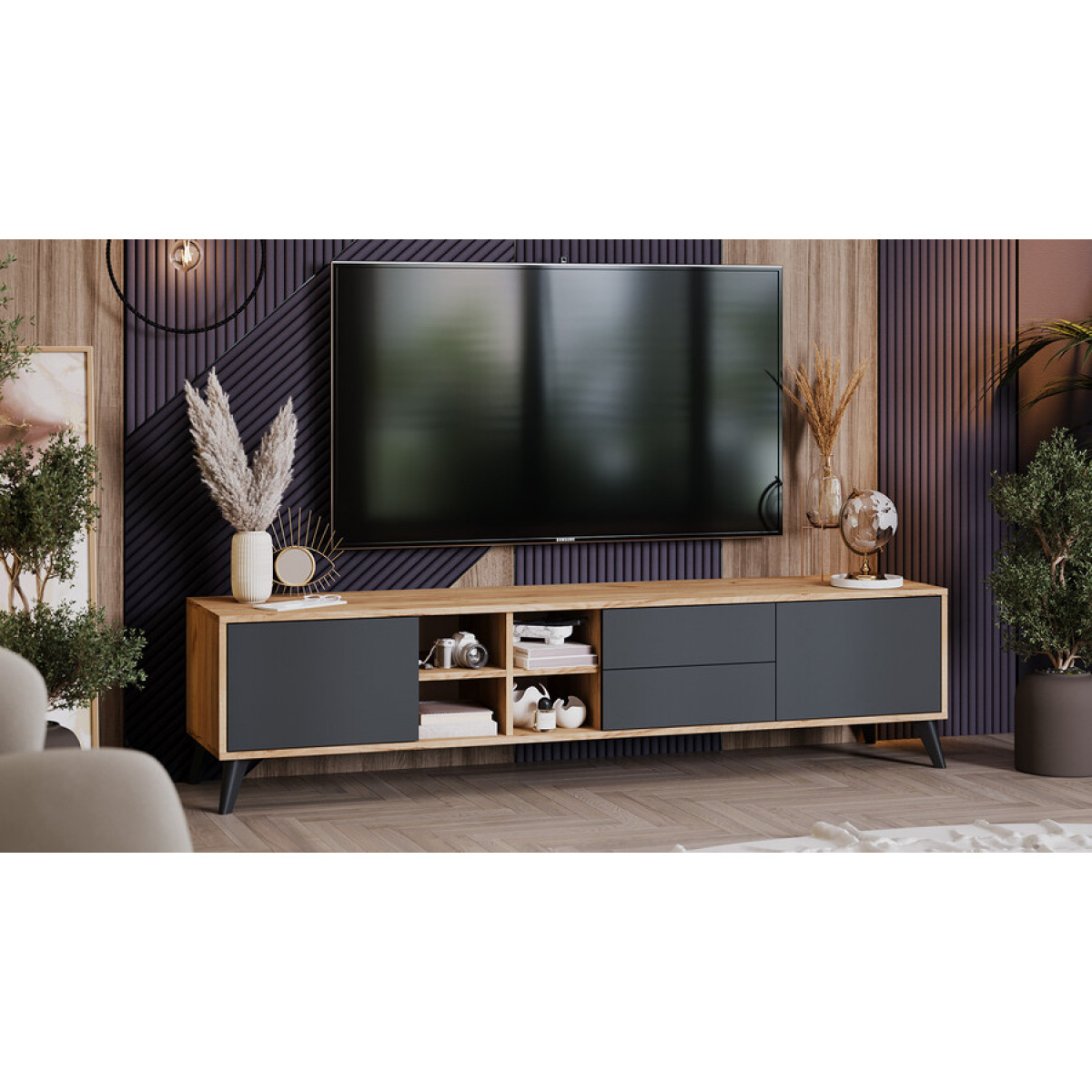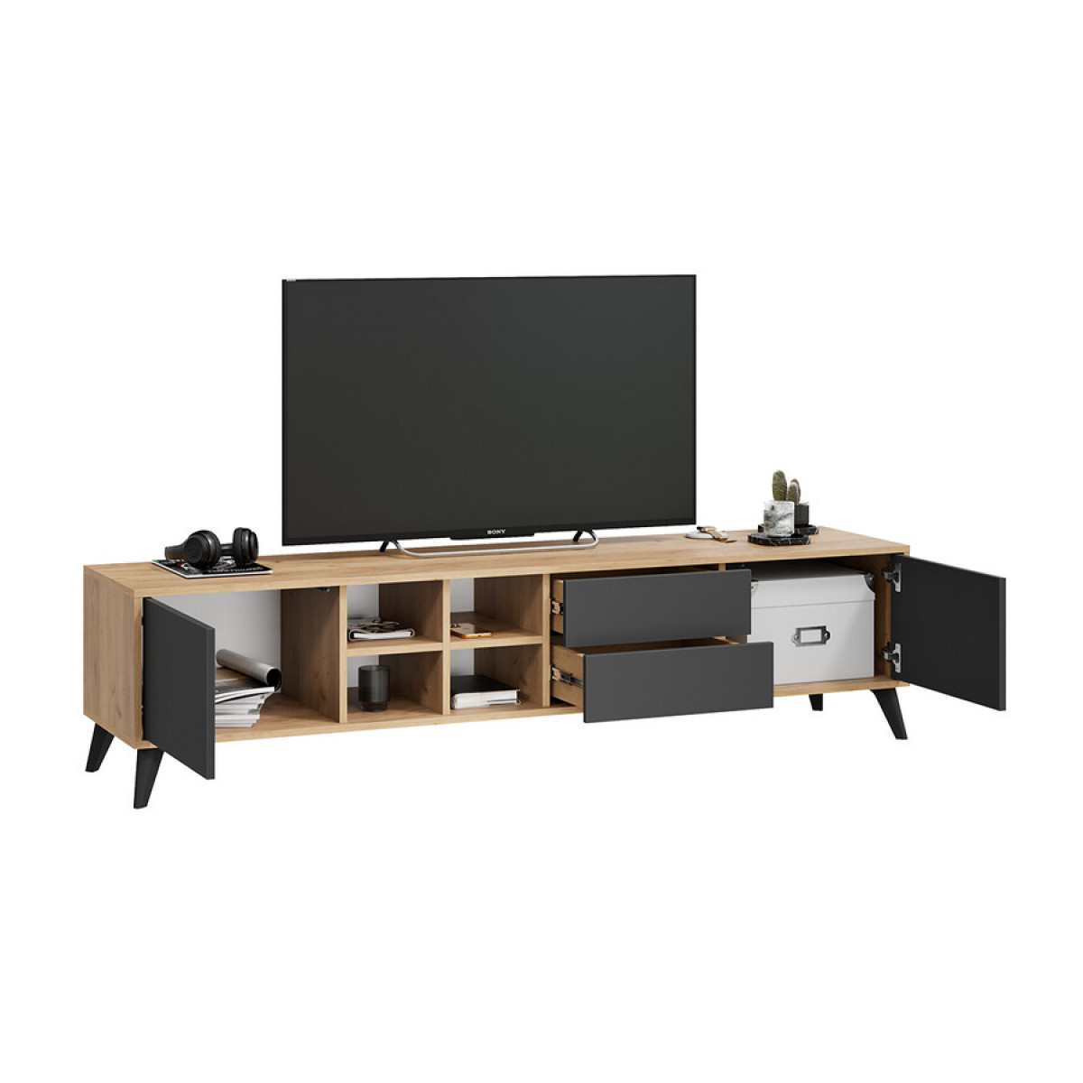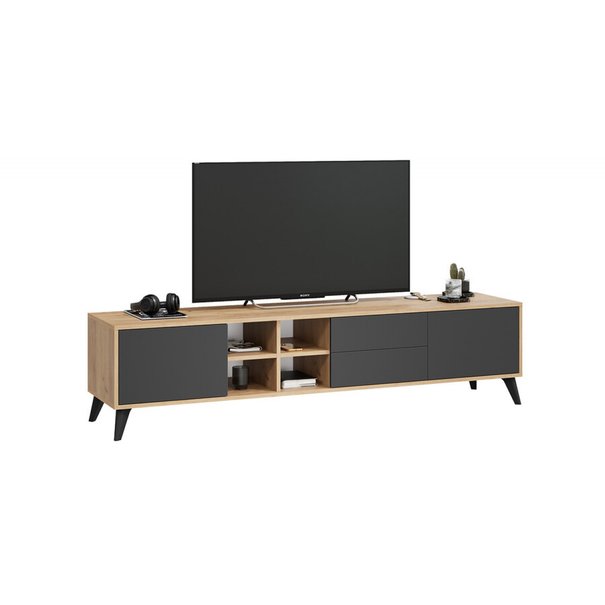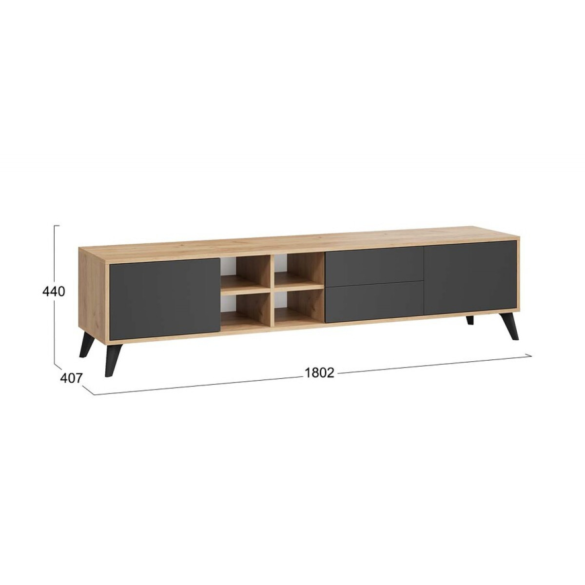 Тумба ТВ тип 5 с опорами Черный матовый, Дуб Крафт золотой, Антрацит