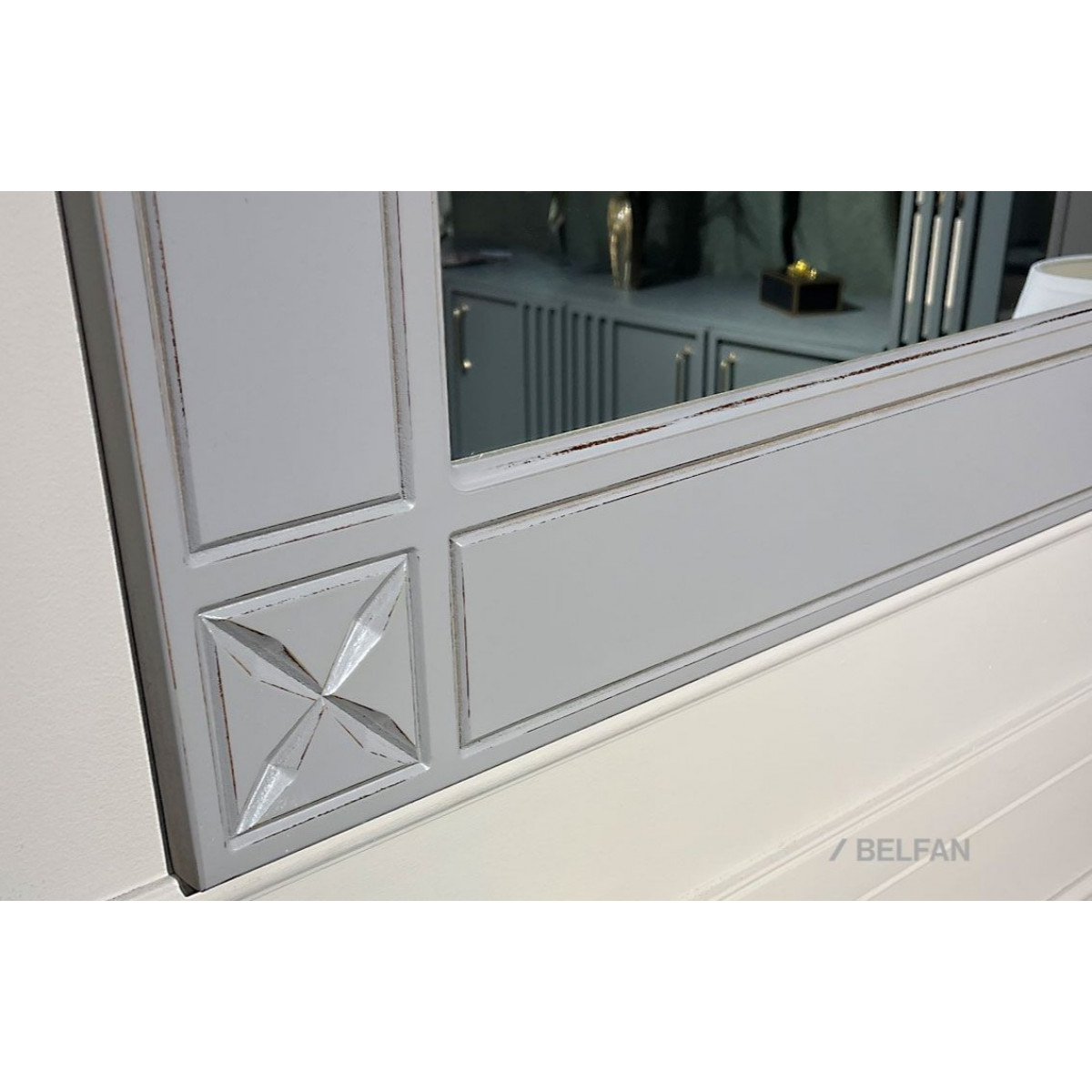 Навесное зеркало Brianson в цвете "муссон+дуб" поможет Вам расставить последние штрихи в интерьере. Оно может стать самостоятельной частью Вашего интерьера или дополнить представленный в коллекции «Бриансон» комод.